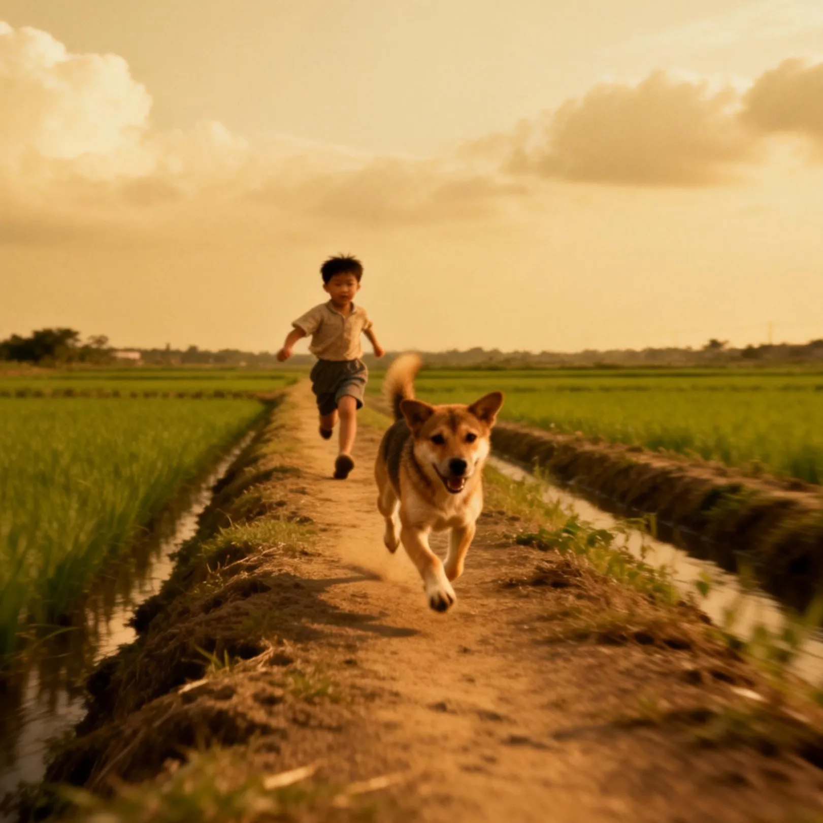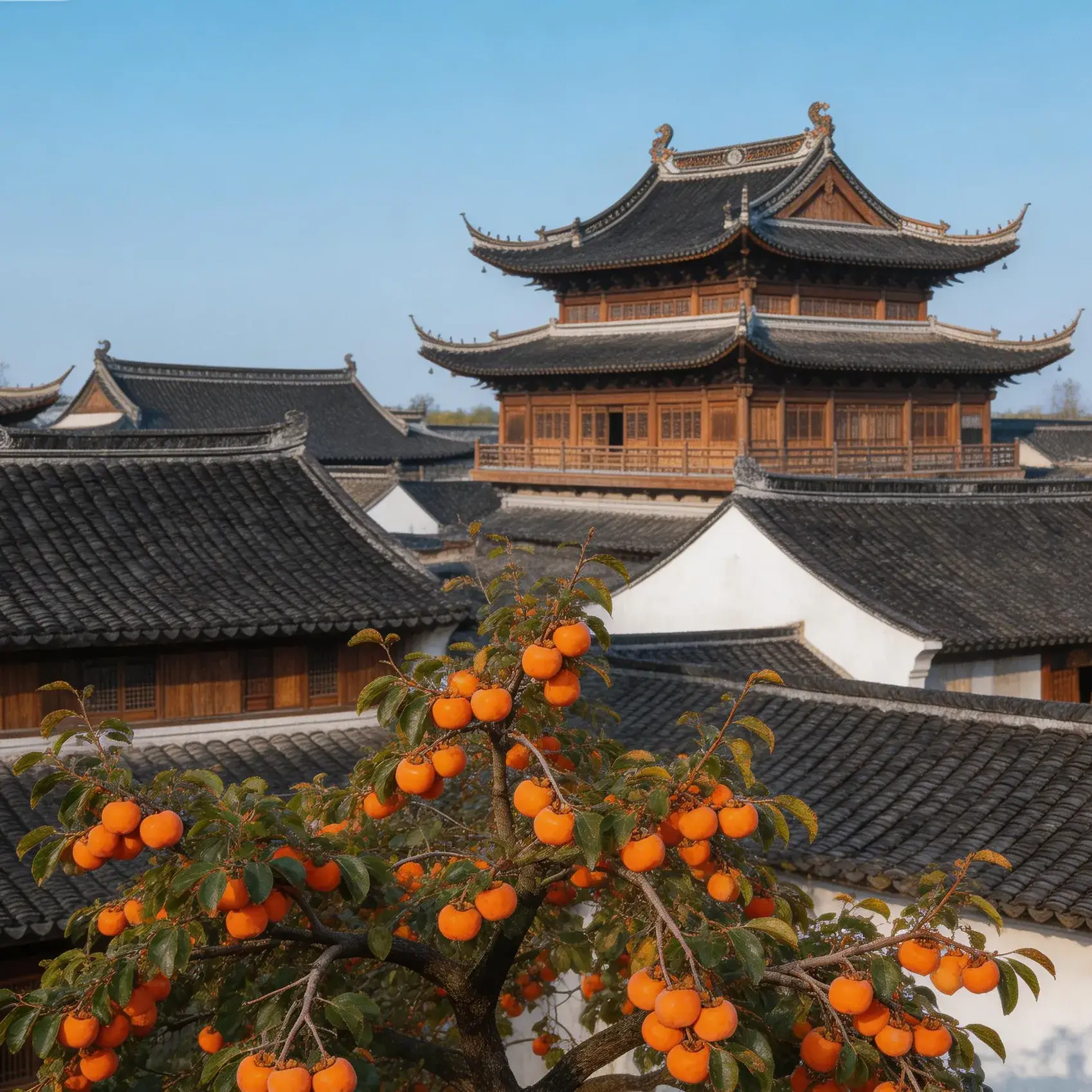 将图1的风格转化为专业摄影风格,暗部叠加。少许柿子树落叶飞溅,前景落叶虚化,动态模糊,背景动态虚化,阳光灿烂,蓝天白云,光影交错,突出速度感和视觉冲击力,强透视。